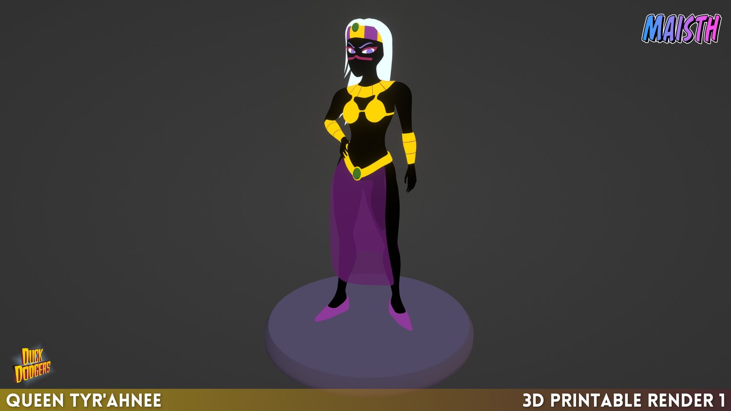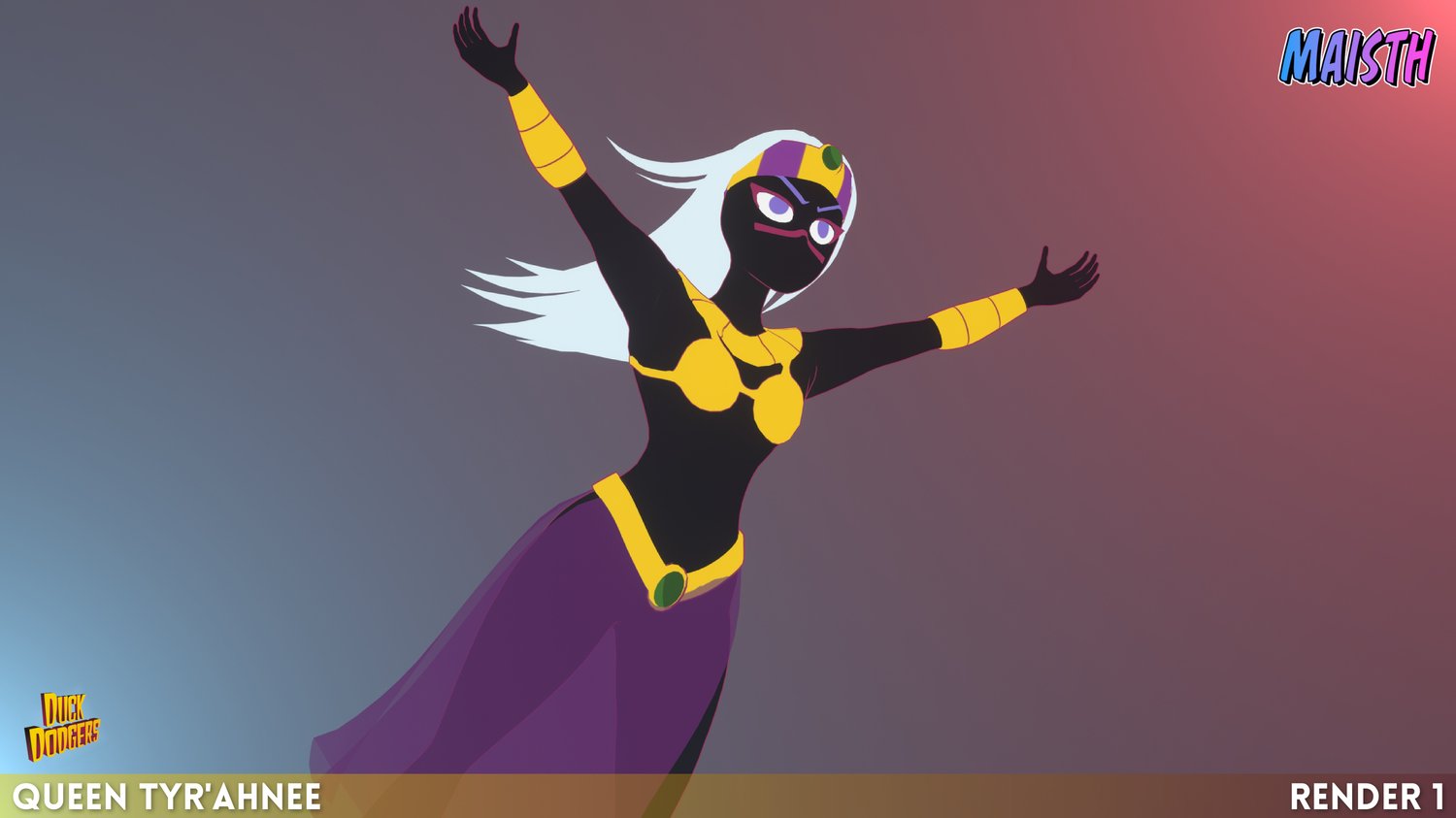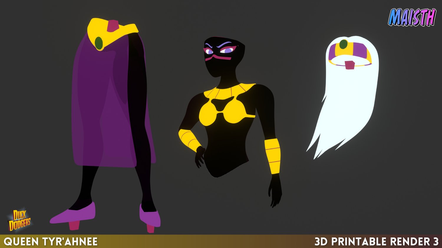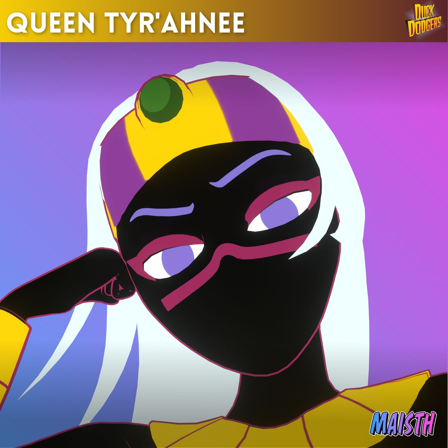 Este es un modelo 3D de la Reina Tyr'ahnee, de Duck Dodgers, creado desde cero, este modelo está basado en la serie, pero tomando algunas libertades como tener un cuerpo más "realista", pero aún tratando de tener el mismo sentir de la caricatura.
