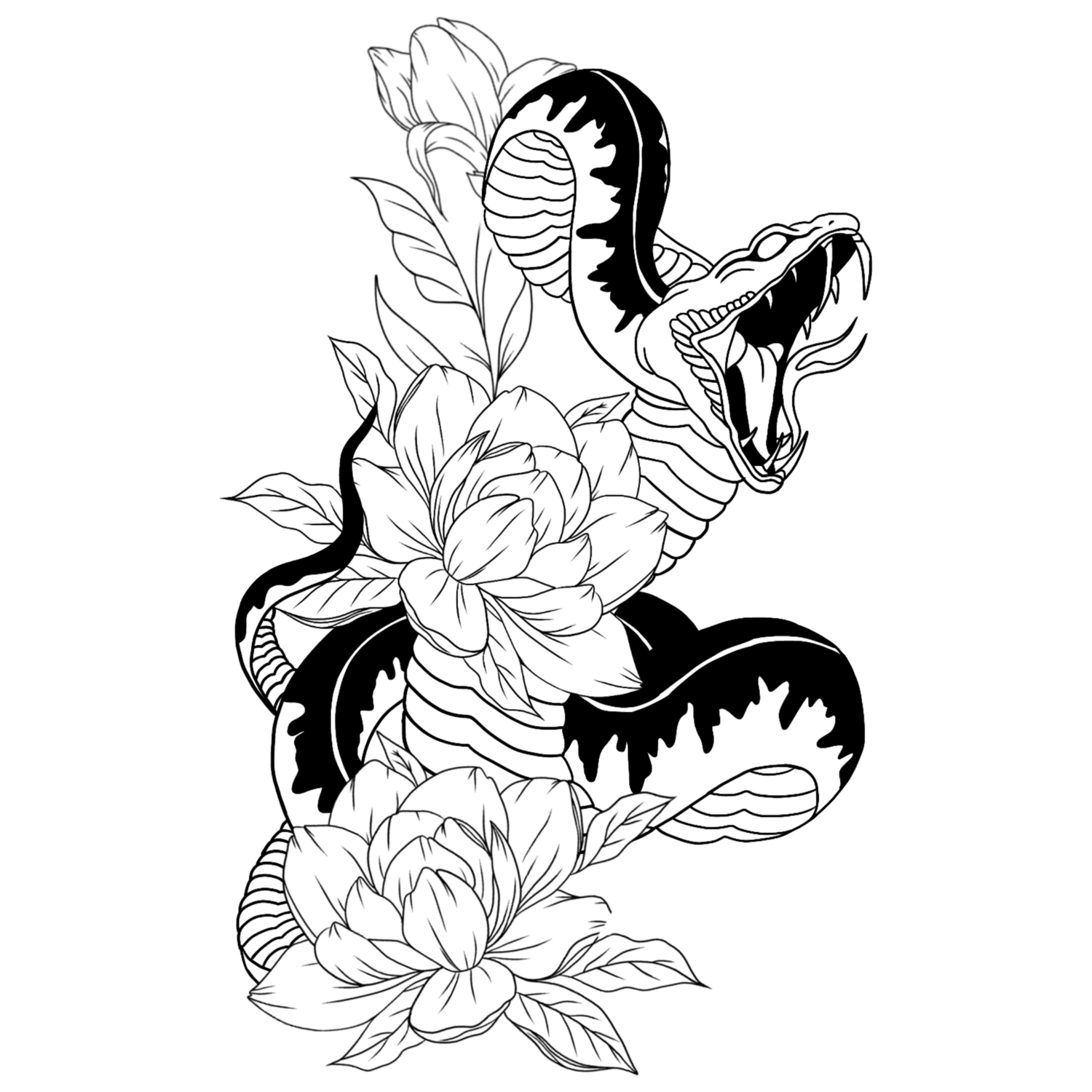 Flower Snake Tattoo Design