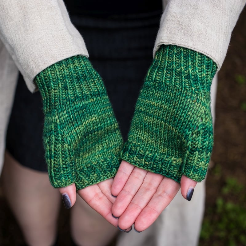 The Dicotyledon Mitts will use just under half of a 100g skein of DK weight yarn, leaving plenty to make a matching Dicotyledon Hat.