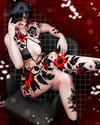 A dramatic Valentine’s Day inspired texture blending the beauty of blooming roses with twisting thorns and delicate butterflies. This design captures the contrast between love and vulnerability soft petals against sharp edges perfect for romantic yet bold creations.