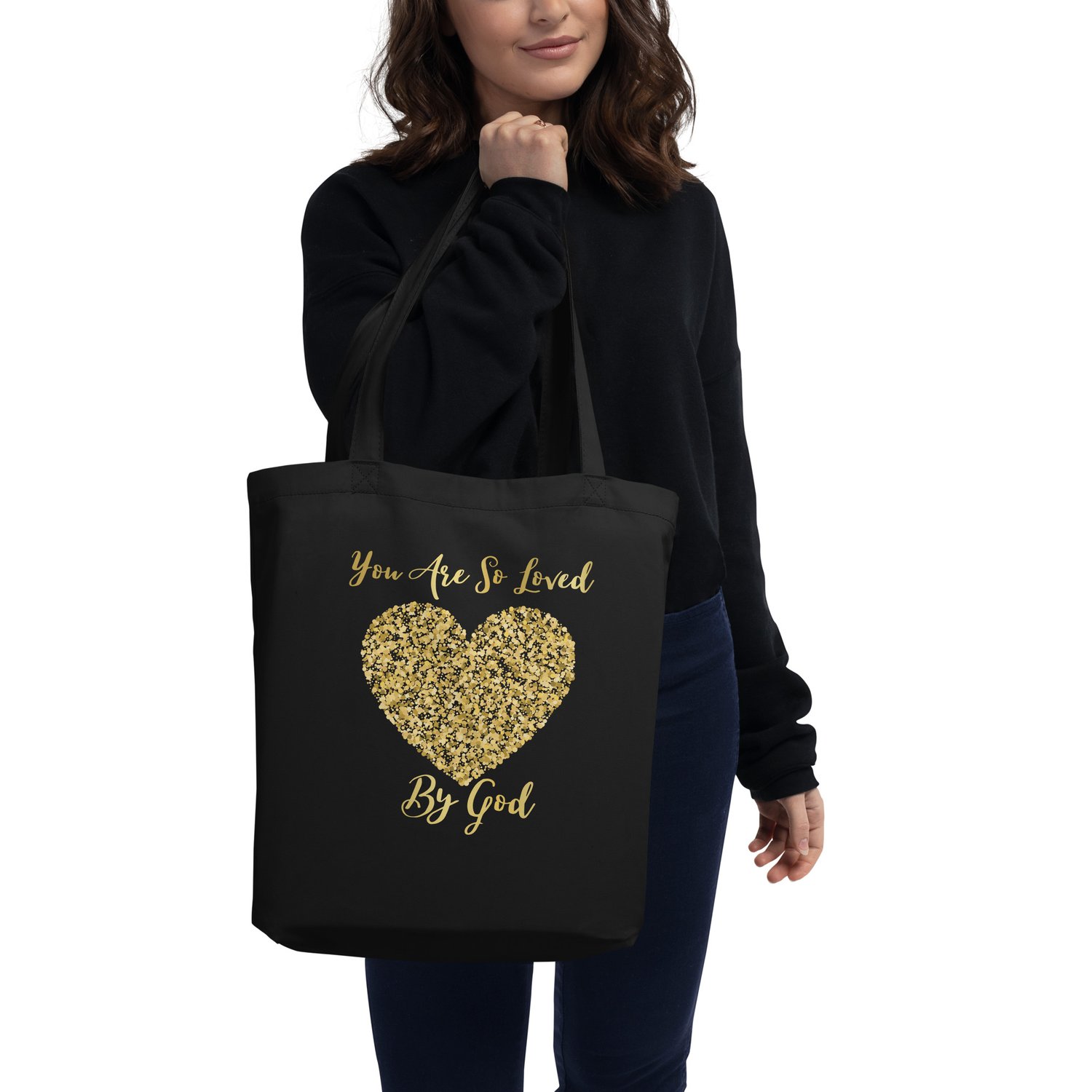 Beautifully designed eco-friendly tote bag uniquely designed to standout as a daily reminder of God's love. This roomy bag fits books, laptop, journals, groceries and so much more. Along with the You Are So Loved By God book, it makes a great gift for any occasion.