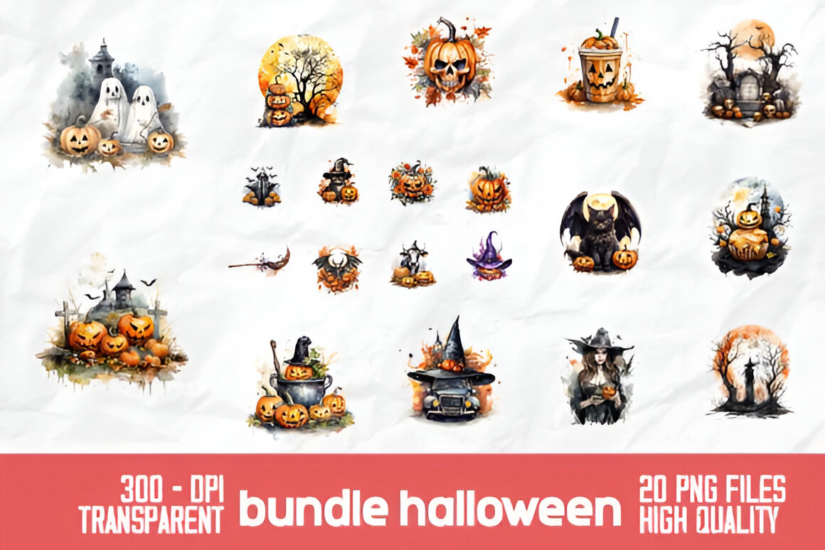 Get ready for a spooktacular Halloween with our Halloween Spooky Pumpkin Bundle! Perfect for all your seasonal designs, this bundle includes a bewitching array of 20 high-quality PNG files (300 DPI) featuring a variety of spooky and fun pumpkin-themed illustrations.