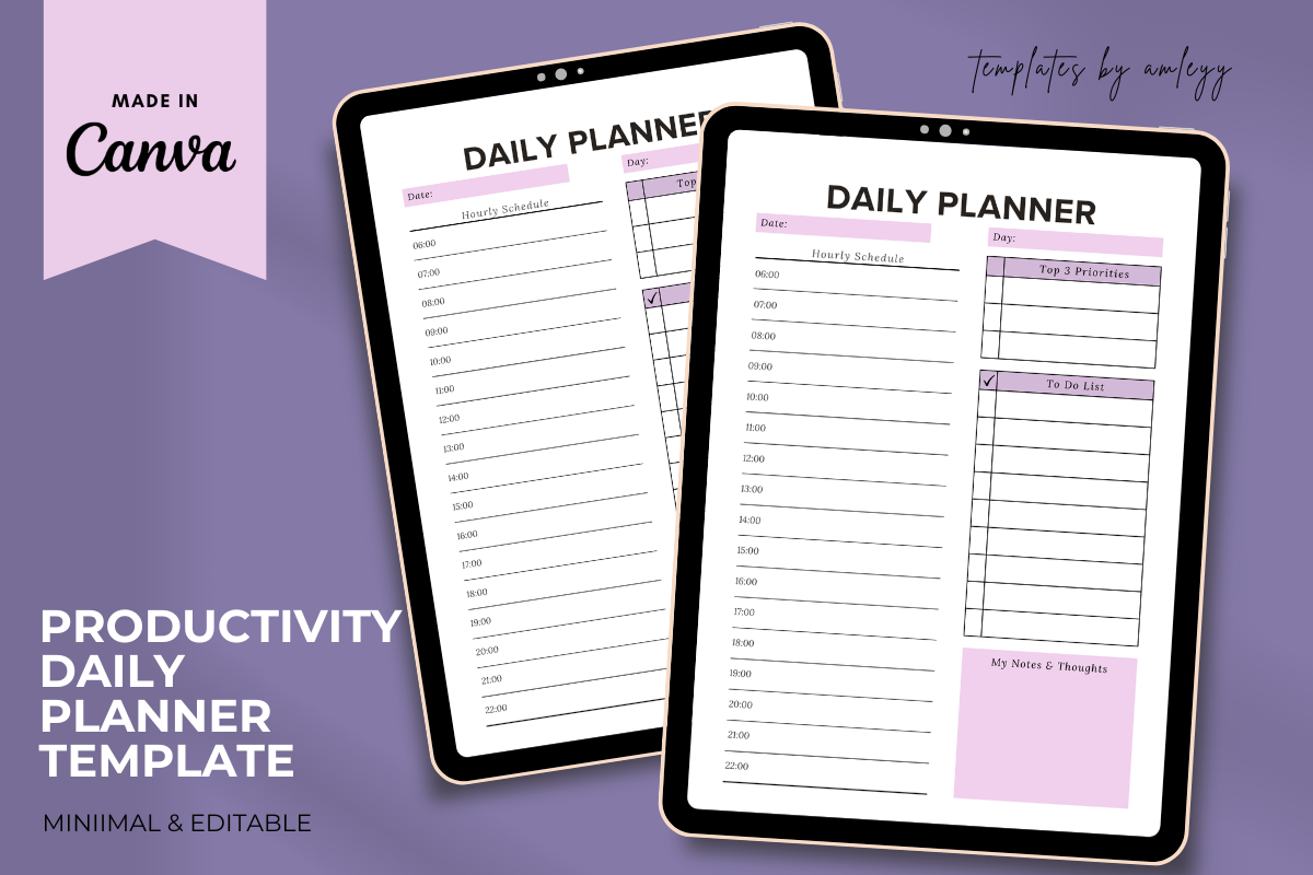 Productivity Daily Planner Template – Editable Canva Daily Organizer