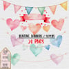 Bring a soft, whimsical touch to your creative projects with this beautiful set of hand-painted watercolor bunting, banners, and heart garlands! Perfect for invitations, scrapbooking, card making, planners, social media graphics, and more.