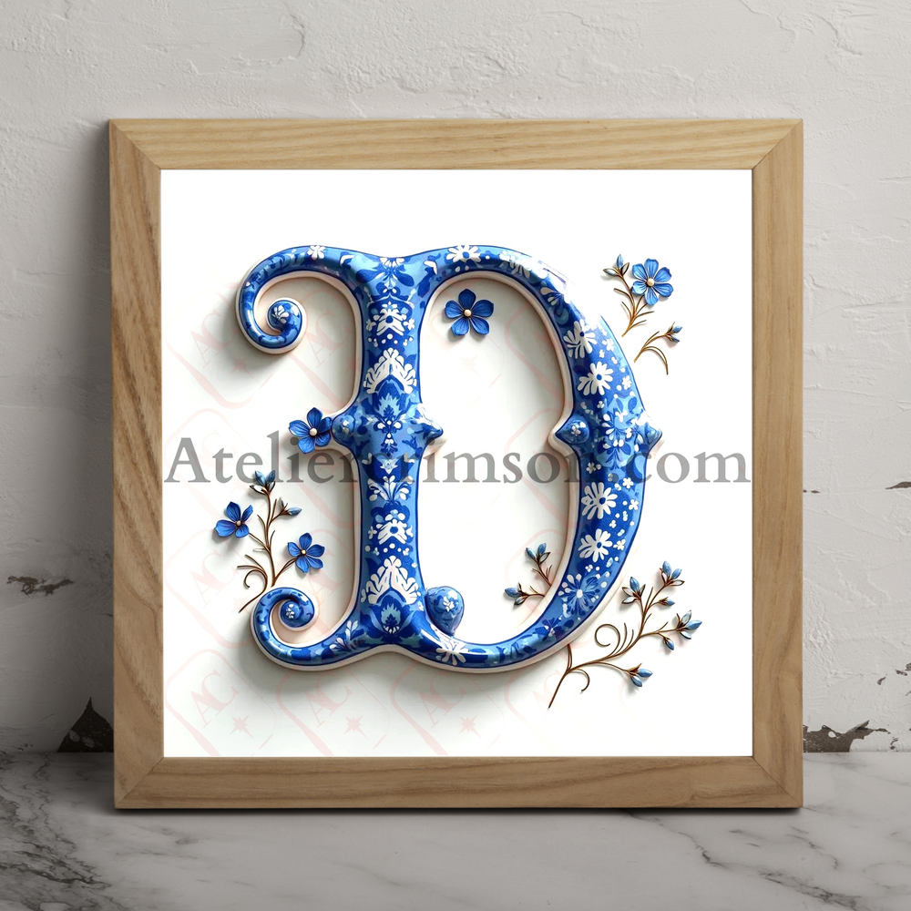 The letter D delftware blue tiles Download Now this high quality AI-generated image, perfect for adding a touch of tranquility and creativity to any space.