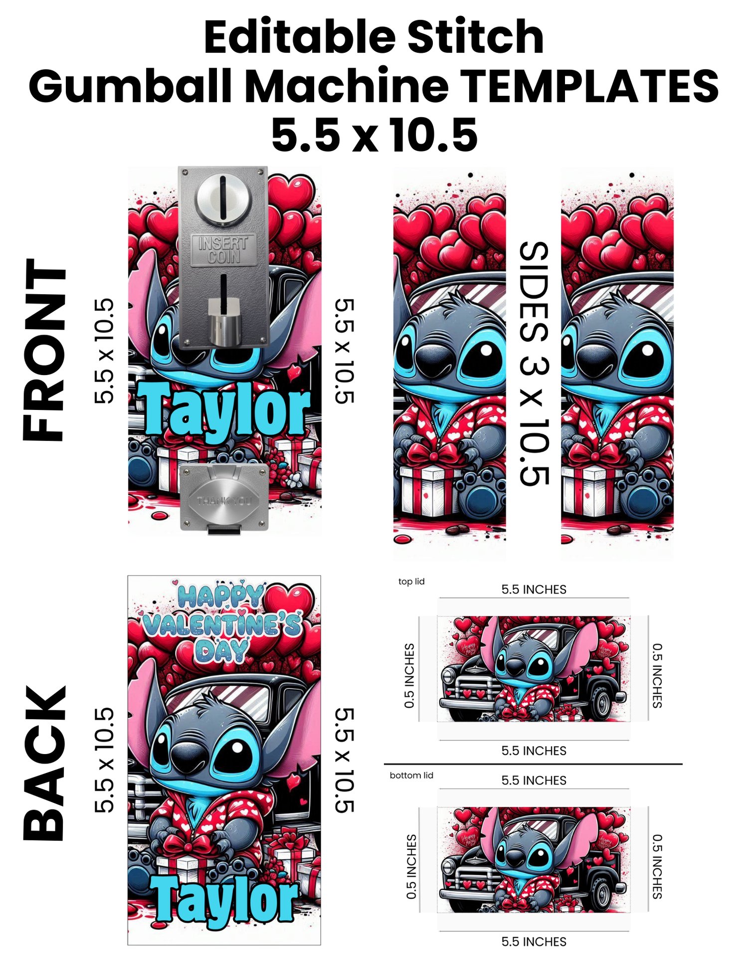 Editable Stitch Gumball Machine 5.5 x 10.5