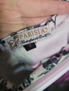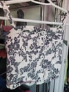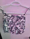 white and black floral print crop top by Parisian works. US Size 8 (M). Front button closer, crossed strap back.