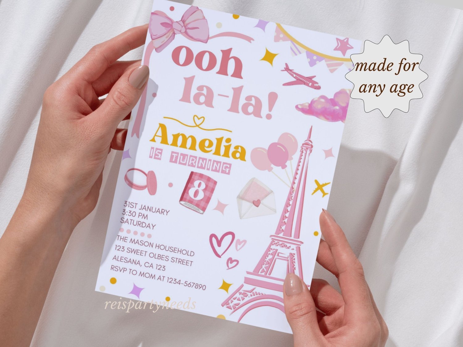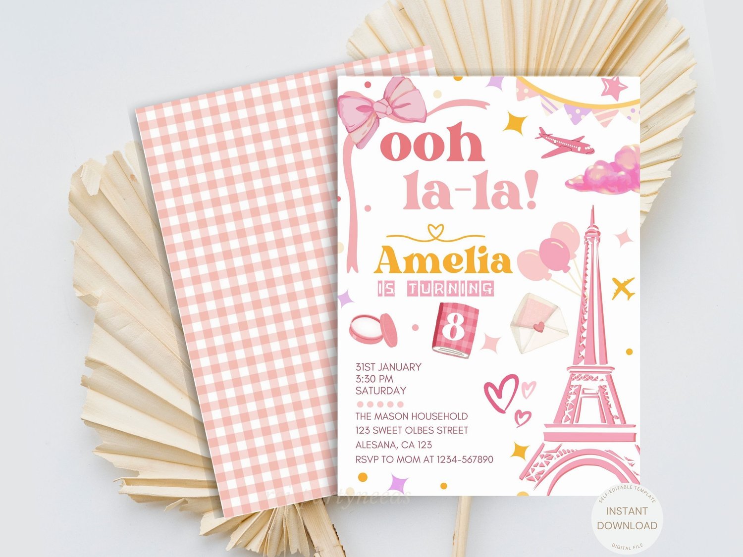 Paris Theme Birthday Invite, Pink Paris Invite, Girls Sweet Birthday Party France Celebration, Customize Editable Card Invitation, Instant Download, Eiffel Tower Party Invitation