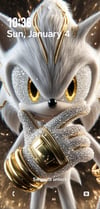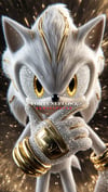 This artwork features a movie-inspired Sonic design captured in an extreme close-up, enhanced with shimmering diamond dust textures and subtle golden highlights while preserving a clean, white aesthetic. Every detail is rendered in ultra-high resolution to create a bold, immersive screen presence that feels sharp, modern, and premium.