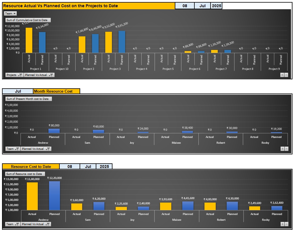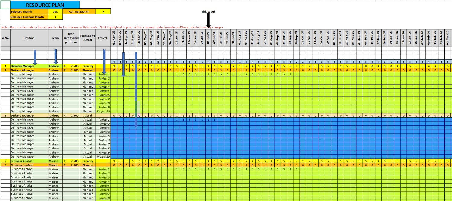 ✔ Dynamic Resource Dashboard with Resource Monthly, Quarterly and Annual Utilization (Individual & across the Projects) within Business Unit.