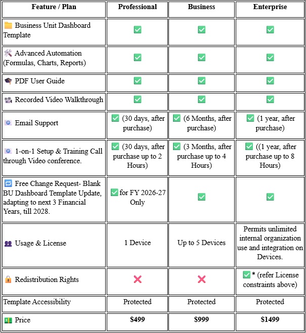 Note- After Purchase of Business Unit Dashboard Template, user will be provided with specific license copy in pdf, along with Business Unit Dashboard template on email separately.