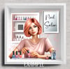 Nail artist/technician business logo design. 56 PNGs. 36 base models, 3 skin tones, all with blonde hair and blue, green and brown eyes. Additional hair colours provided as clipart in all 4 styles.