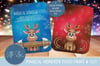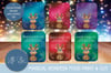 ⭐️ 12 PNG image for a reindeer in a snowy colourful background in different colour choices