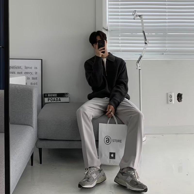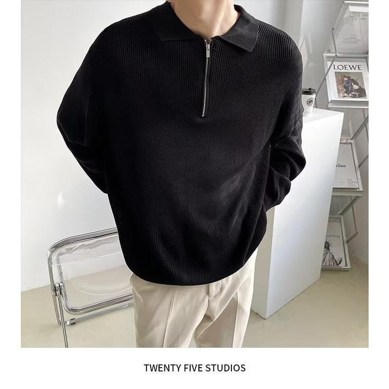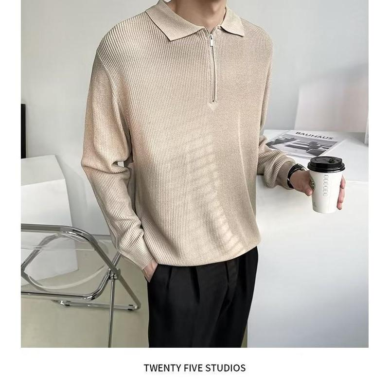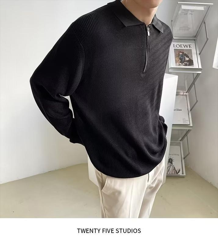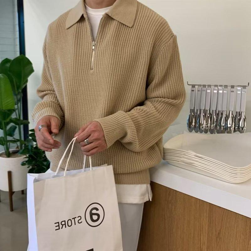 Men's Half Zipper Polo Sweater, Retro Japanese Style Cotton Knitwear, High Quality Cool Jacket, Autumn And Winter