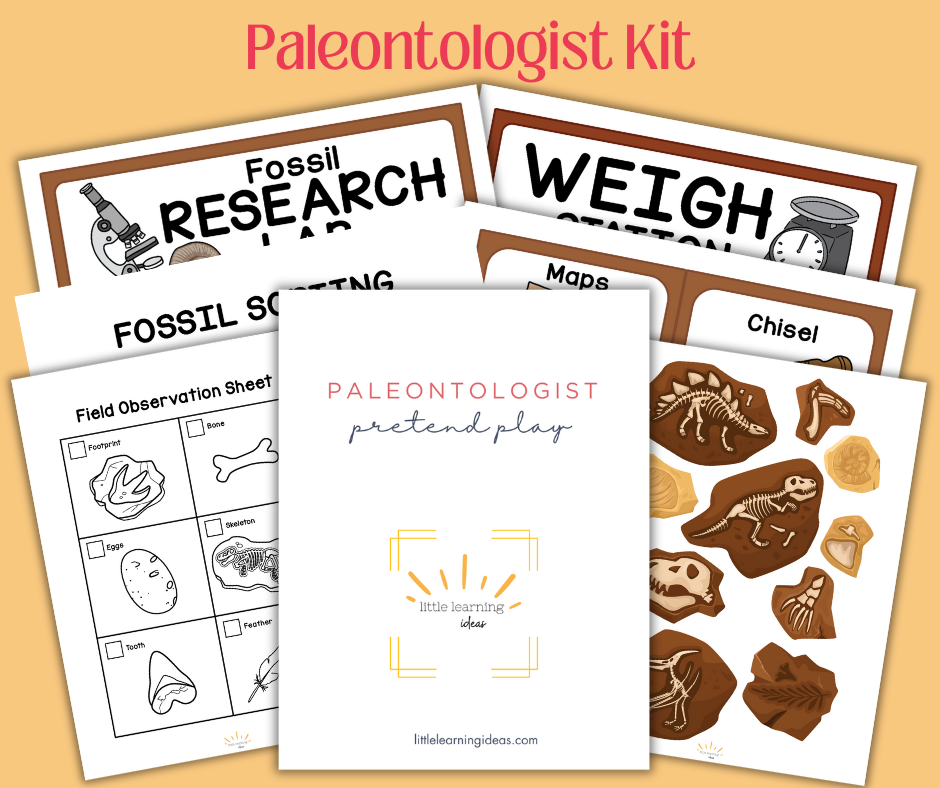 Download our Paleontologist Pretend Play Kit! Inside you'll find fun dinosaur related activities. Perfect for a weekly theme about dinosaurs or to use as a part of a Science Observation Unit!
