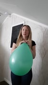 Cute girl Salome blows up a nice green balloon and b2p's it with a little help from a pin. Her reaction is priceless. Eeek!