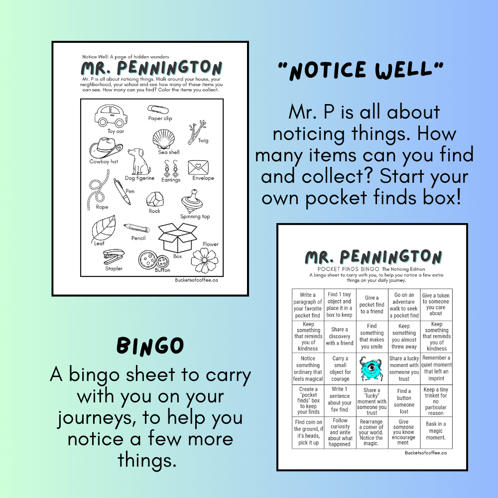 This Activity Bundle invites little explorers to slow down, notice more, and collect tiny bits of everyday magic alongside Mr. Pennington.
