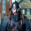 This Viking is properly dressed and has the proper headgear for a Norwegian Viking. Contrary to popular myth, Vikings did not wear horned helmets. Instead, they wore simple, functional helmets made of iron or leather. It is likely that this Viking in Bergen belonged to the Viking tribe called the "Hordes". Tough men, huh?