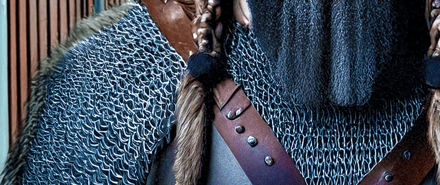 This striking portrait depicts a Viking warrior from the "Hordes" tribe in Bergen, Norway. Contrary to popular misconceptions, Vikings did not wear horned helmets. Instead, they donned simple, functional iron or leather headgear that provided protection without sacrificing mobility.