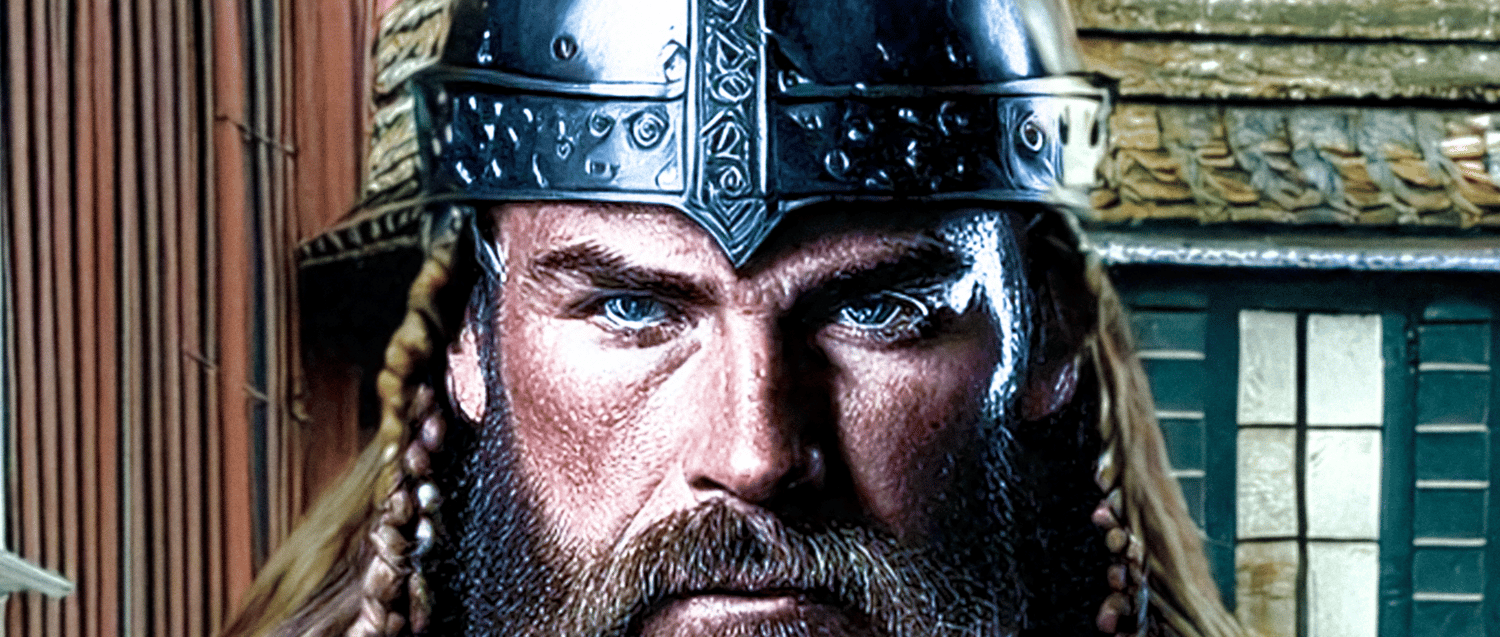 The Viking in this artwork is properly attired, with an unwavering gaze that conveys a sense of strength and resilience. His rugged features and imposing presence command respect, hinting at the fierce and disciplined nature of these ancient Norsemen.