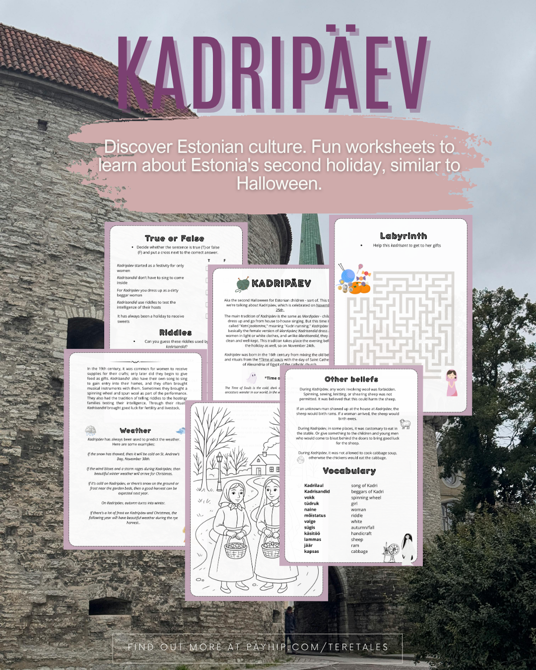 Kadripäev worksheets. Learn about Estonian culture. An Estonian holiday similar to Halloween. Worksheets to learn about Estonian culture.