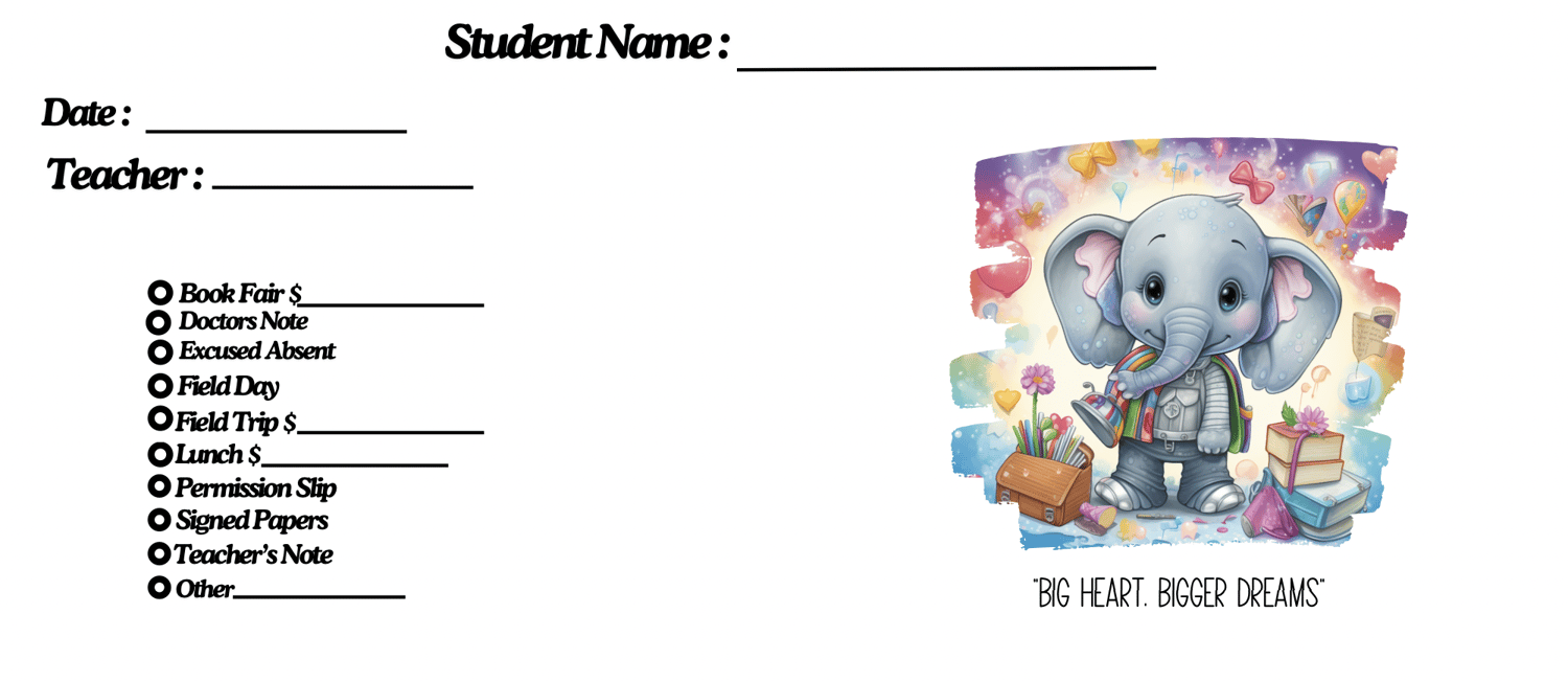 📝 Pre-filled checklist (Book Fair, Absent Note, Lunch $, etc.)
