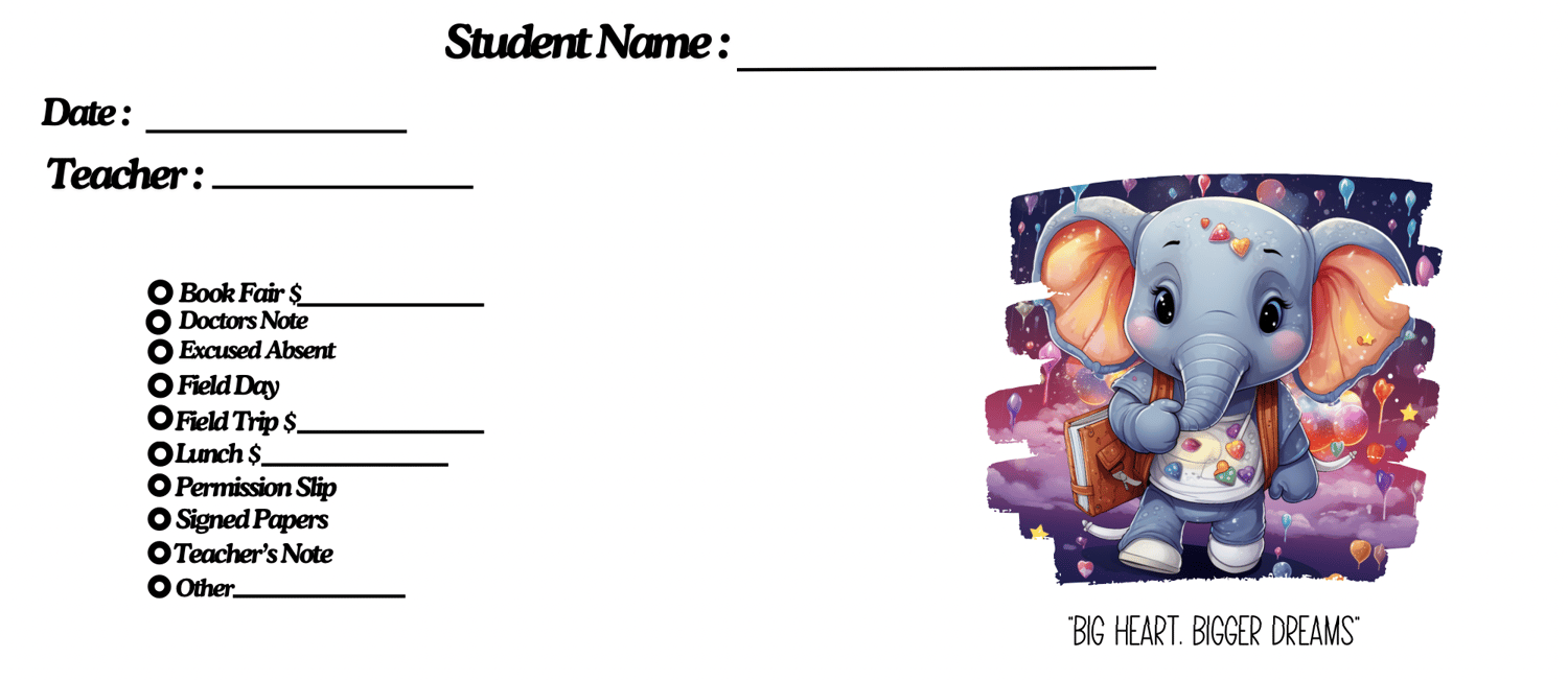 Make school communication a breeze with this adorable 13-piece envelope set featuring lovable elephants and uplifting messages! Perfect for teachers, classroom helpers, or parents managing weekly folder notes, field trips, and more.