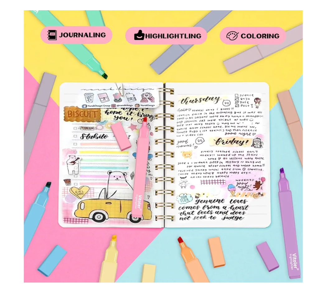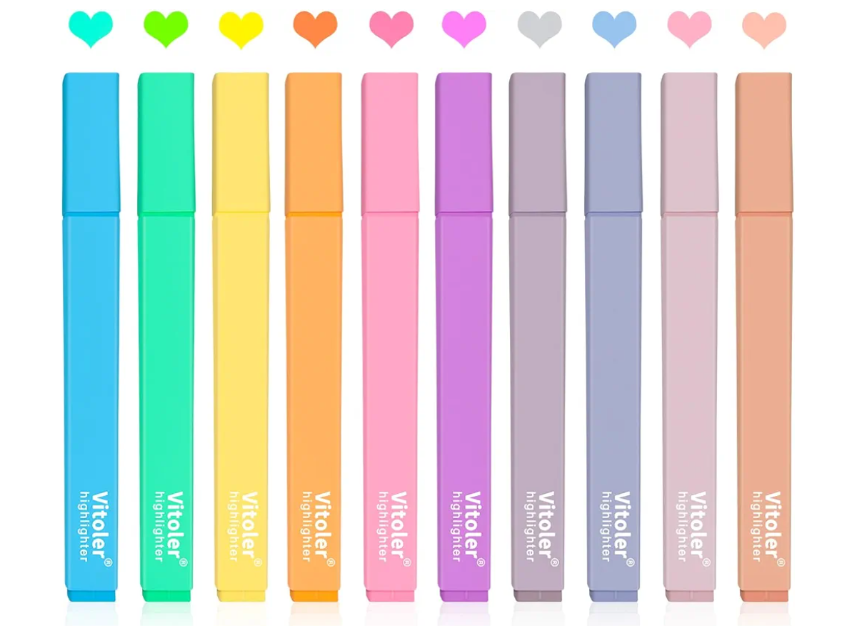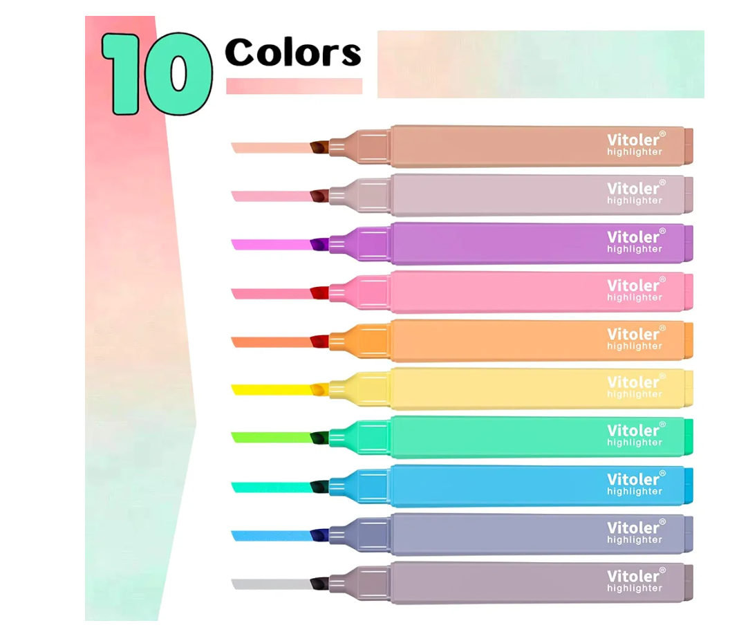 Vitoler 10Pcs Aesthetic Highlighters, Chisel Tip Marker Pens, Assorted Color Candy, No Bleed Bible, Cute Pastel for Journaling Planner Notes School Supplies
