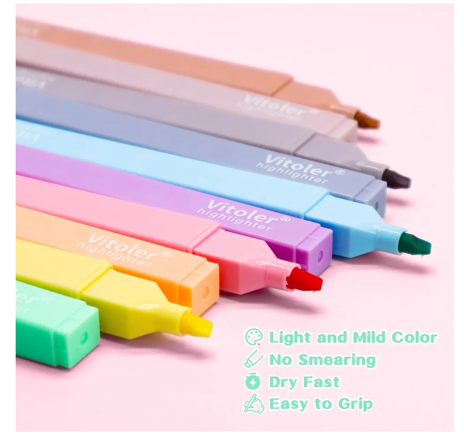Multi- Applications & Great Gift:The highlighters package is a great choice for school supplies or office supplies,also suitable for college, home, office, even travel diary, schedule, work, study, notes, etc. These aesthetic highlighters are also wonderful gifts for teachers, classmates, bosses, coworkers and so on.