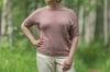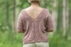 Eudaimonia-tee is a short-sleeved pullover with drop shoulders and a v-back featuring Japanese lace stitch panel details. If you are bold, you can also wear the v-neck on front! The fit is slightly oversized. It is worked from the top-down seamlessly starting from the back pieces and front piece that are worked first separately and later joined to work the body in rounds. V-back depth is adjustable, instructions are given in the pattern.