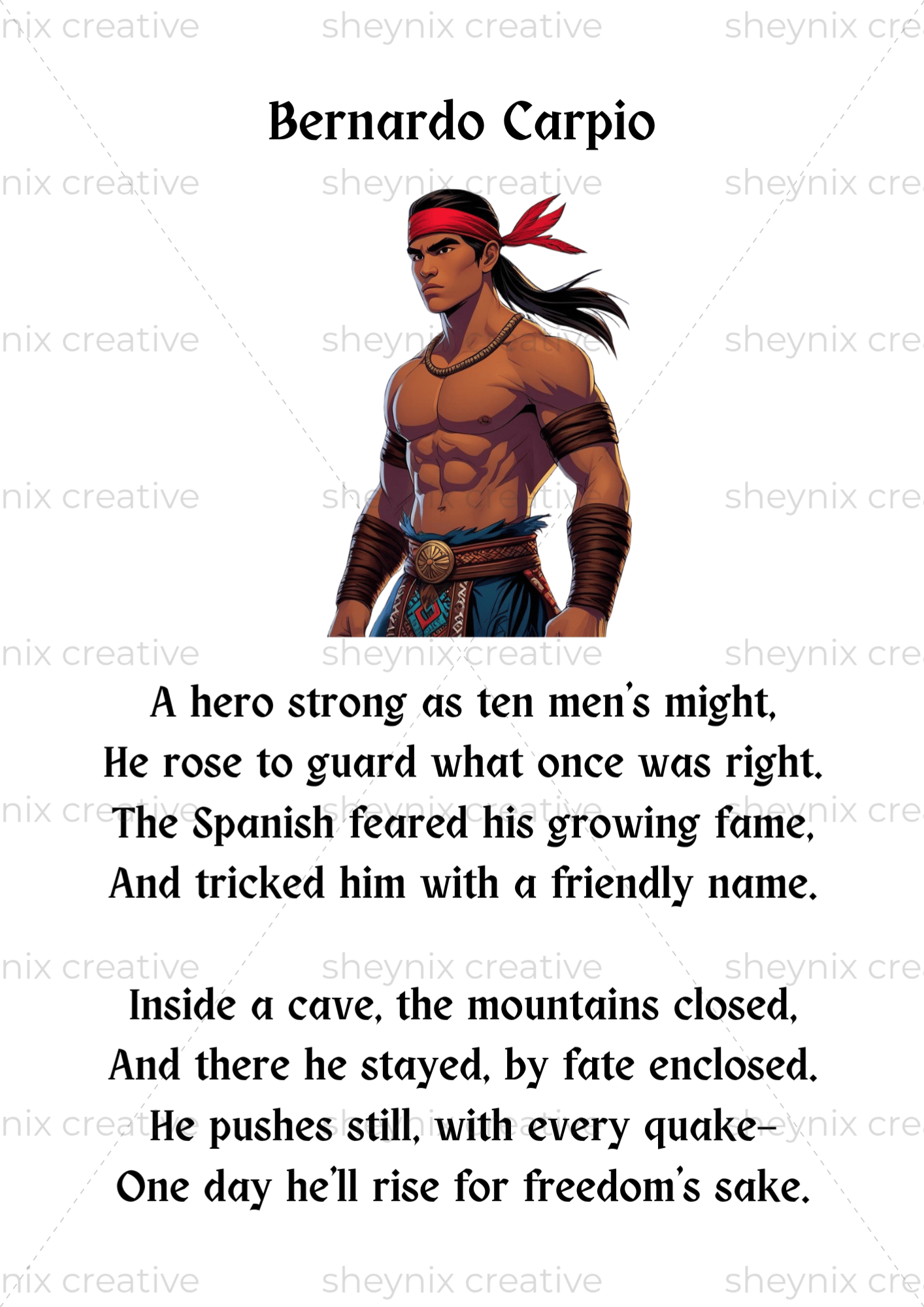 BERNARDO CARPIO (ENGLISH VERSION) Printable Story Book for Kids: Storytelling Filipino Epic Mythology for Kids: Digital E-book Children's book with Activities