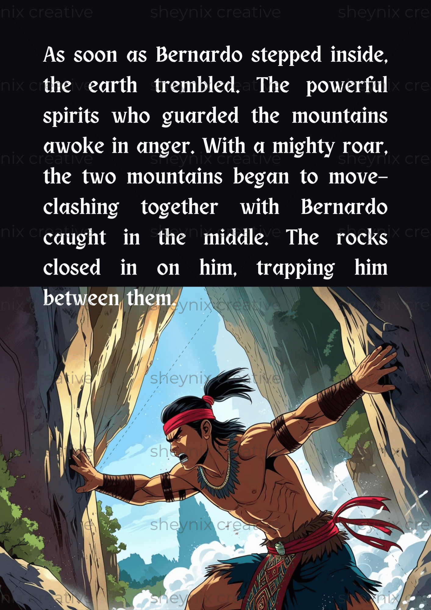 Bernardo Carpio is a legendary Filipino hero with superhuman strength, trapped between two mountains in Montalban. It is said that each earthquake is caused by his struggle to escape. He symbolizes the strength and resilience of the Filipino people.