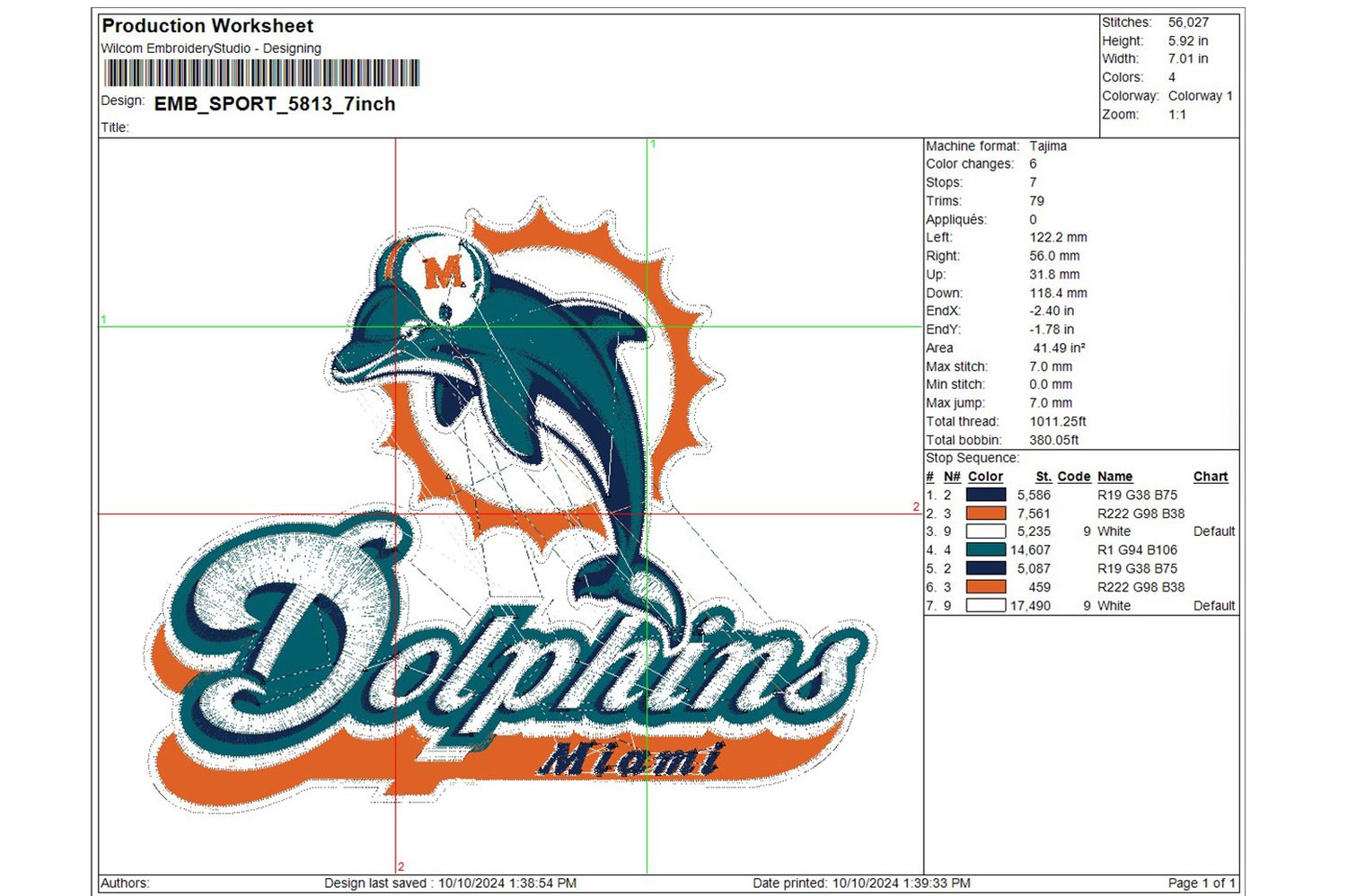 NFL Miami Dolphins Embroidery Design Files, NFL Dolphins, NFL Logo Embroidery Files, NFL Miami Dolphins Machine Embroidery Design, Digital Downlo
