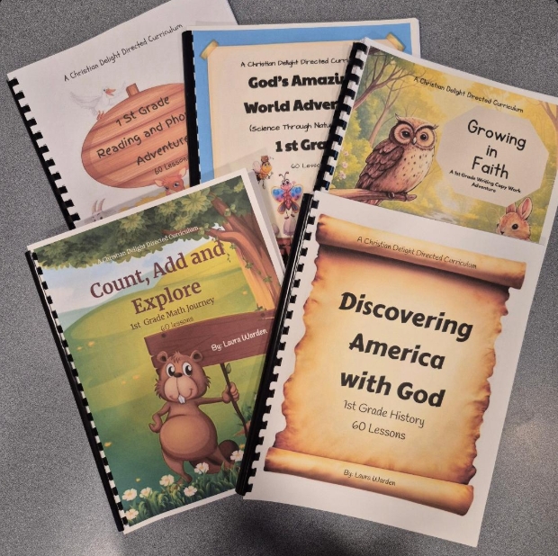 A complete 60-day 1st-grade curriculum set. Learn all about phonics, math, science, history, and writing, all while focused on God. Use these book as is, open and go, or as a jumping off point for you delight directed child.
