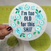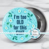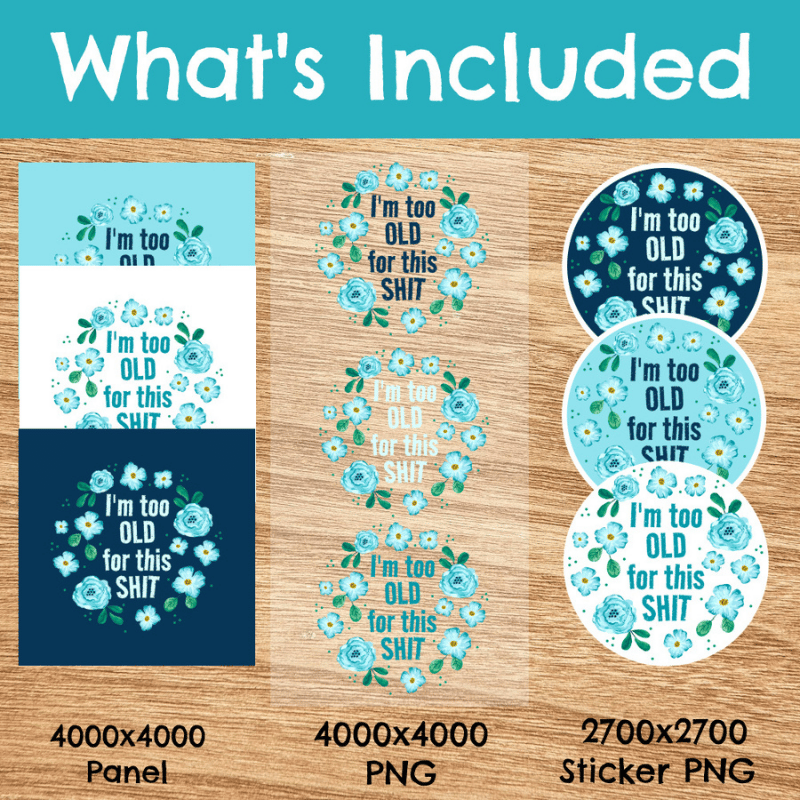 I'm Too Old For This Shit! sweary graphics for stickers, badge reels, jar and candle labels, uv dtf transfers, shirts, digital journals and so much more!