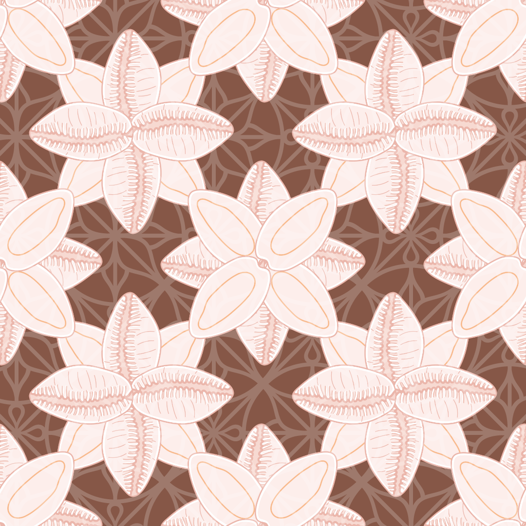 Coffee Bean Trivia seamless vector pattern. Doodle seashell illustration background.