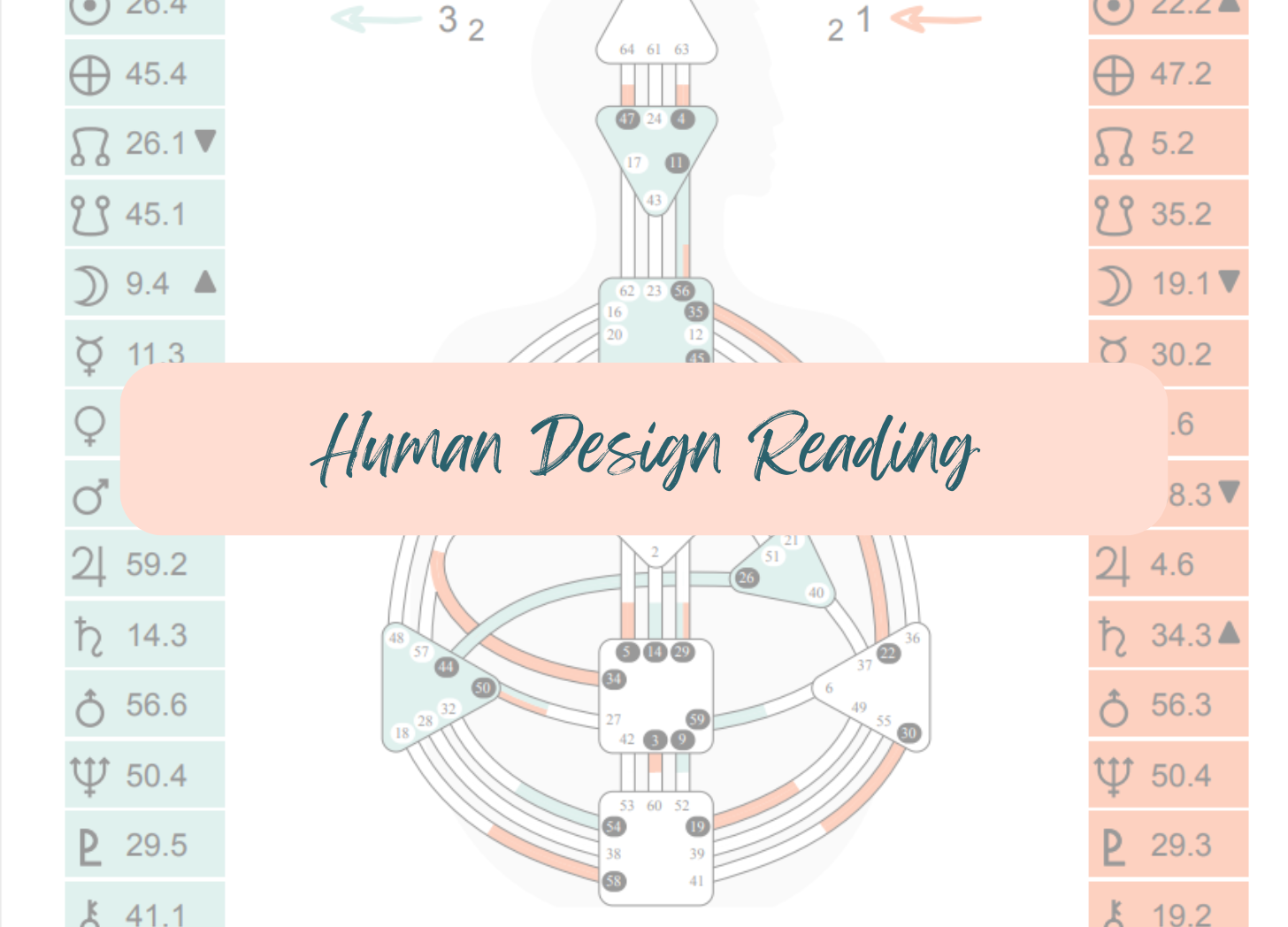 This reading - which is done via Zoom - takes approx 60 minutes and I will tell you about your Type, your Strategty, Authority and your Profile lines. Also about your 9 energy centers and the wisdom and knowledge you will find there. Quite possibly also information about other things I sense would be beneficial for you to know then and there.