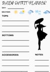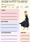 - Daily outfit planning sections: for tops, bottoms, accessories, and personal notes