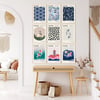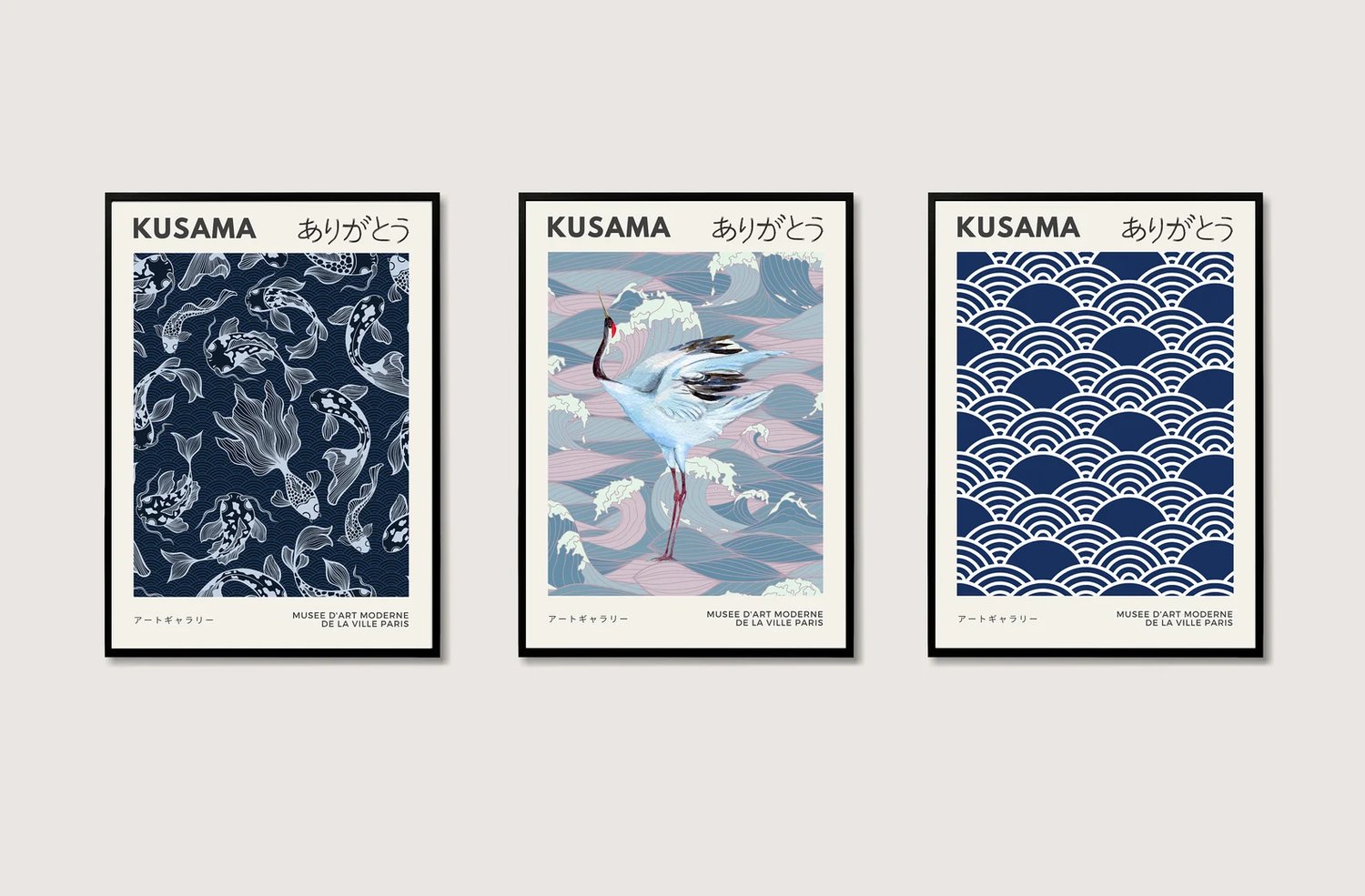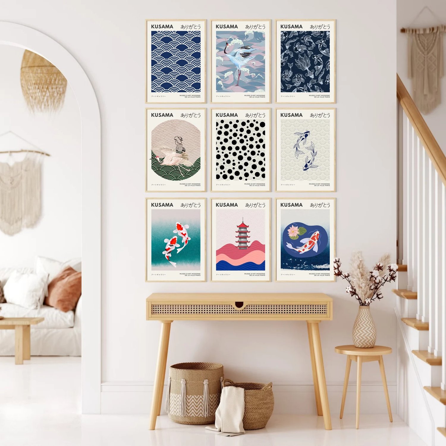 Yayoi kusama print poster set of 9, keith haring print, Blue Wall Art Prints, Japanese Posters, Beige Wall Art Prints, Famous Artists Prints
