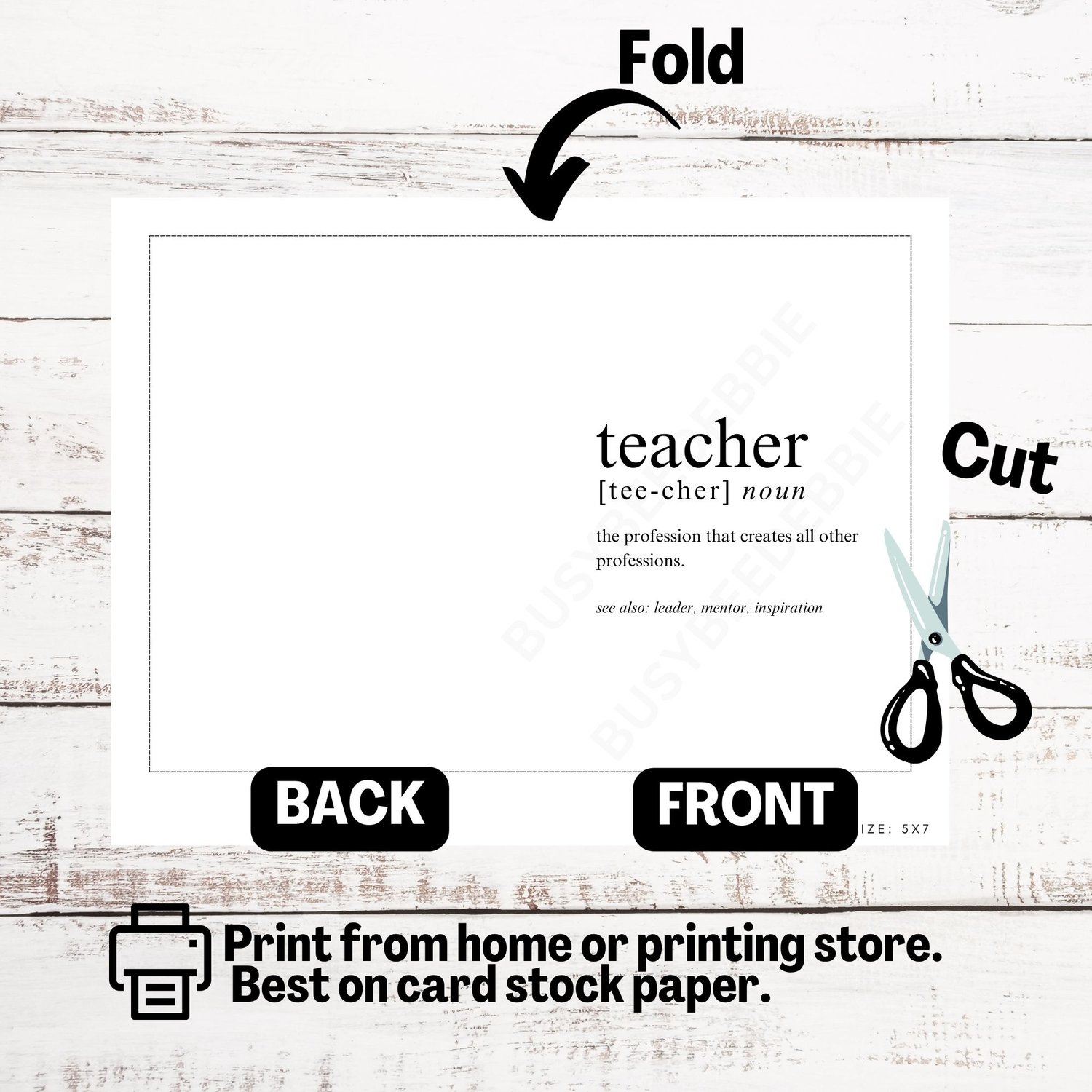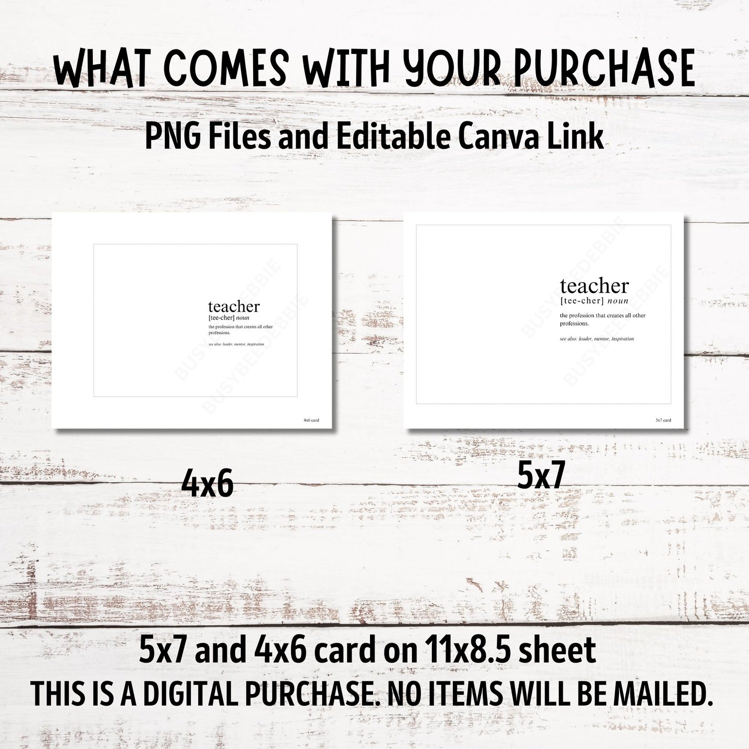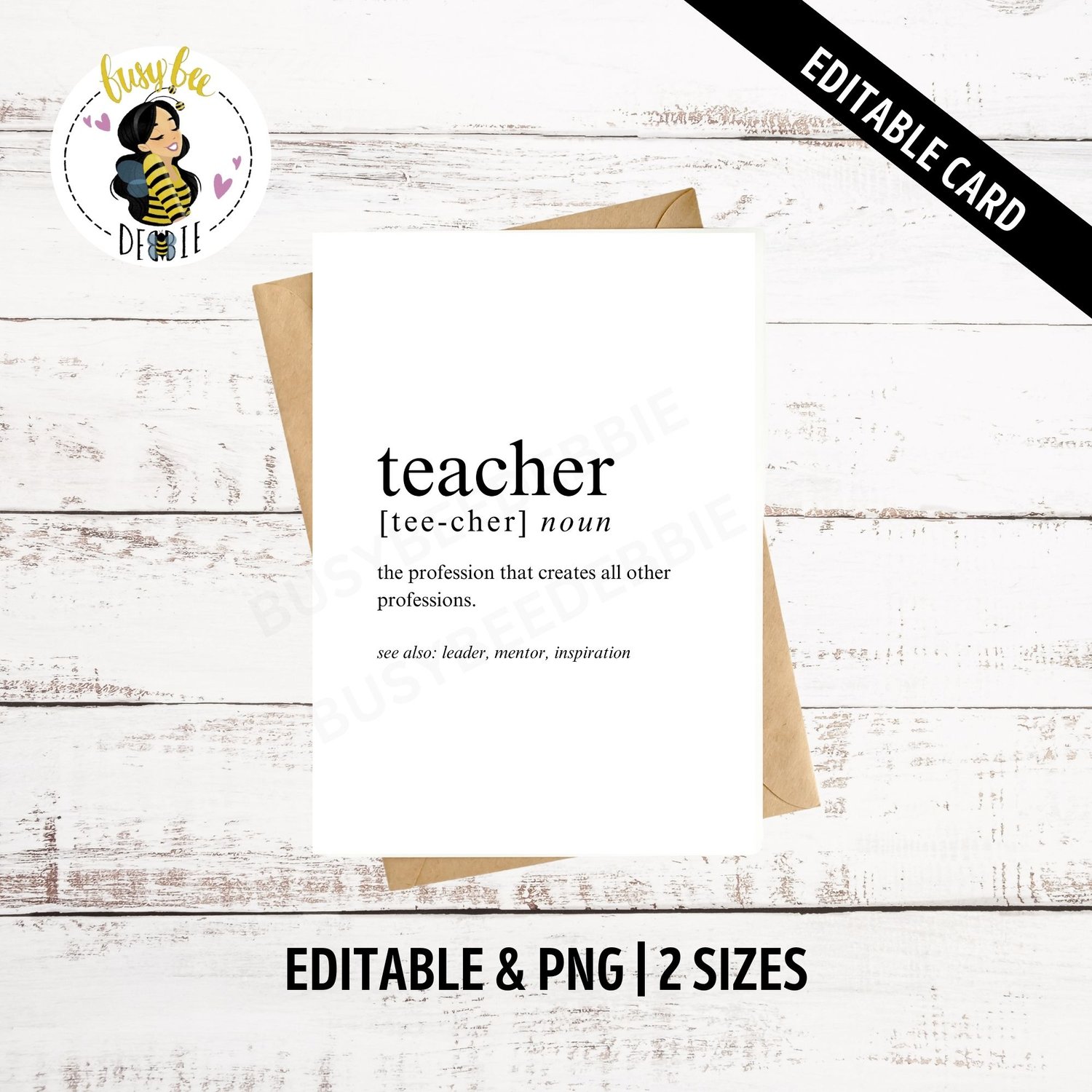 Thank You Card for Teacher | Teacher Gift | Teacher Appreciation Gift | Editable Teacher Definition | Teacher's Week