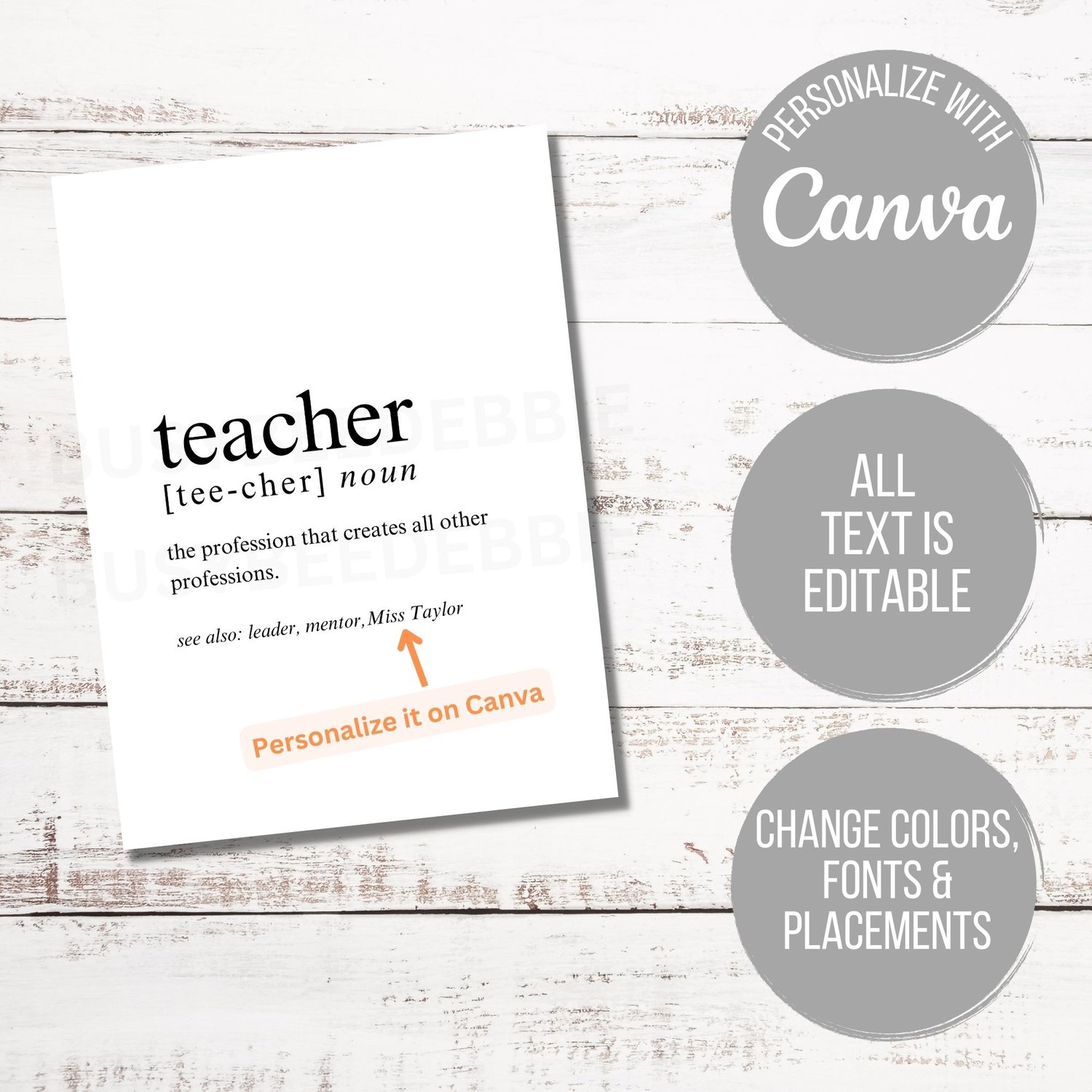 Show appreciation for the amazing teachers in your life with this editable Teacher Definition Card, a thoughtful and customizable gift. Personalize it with meaningful words to make it truly special for any educator who inspires and makes a difference!