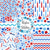 Patriotic Party Seamless Pattern Set of 8, Red White Navy Blue