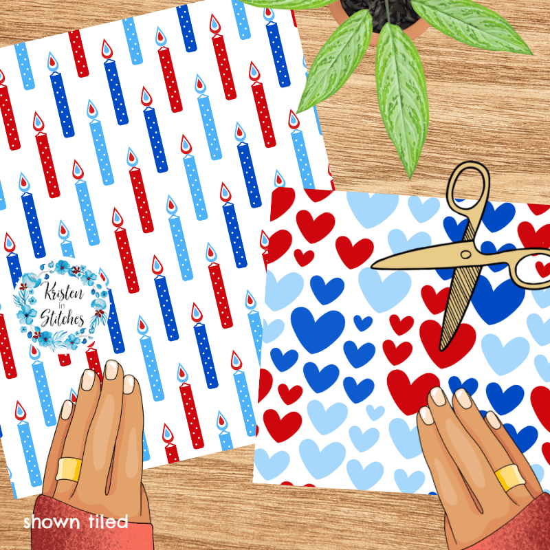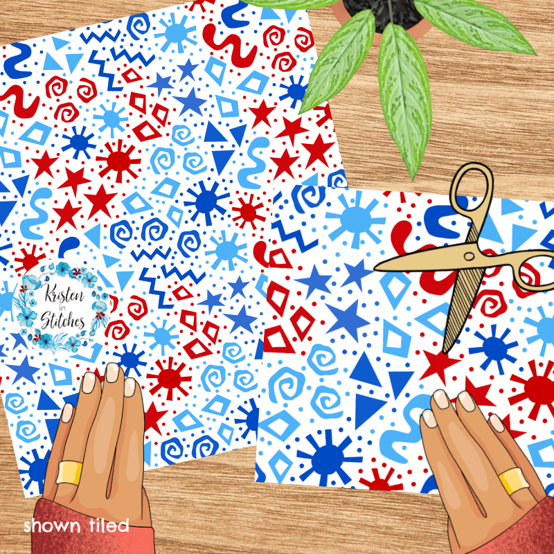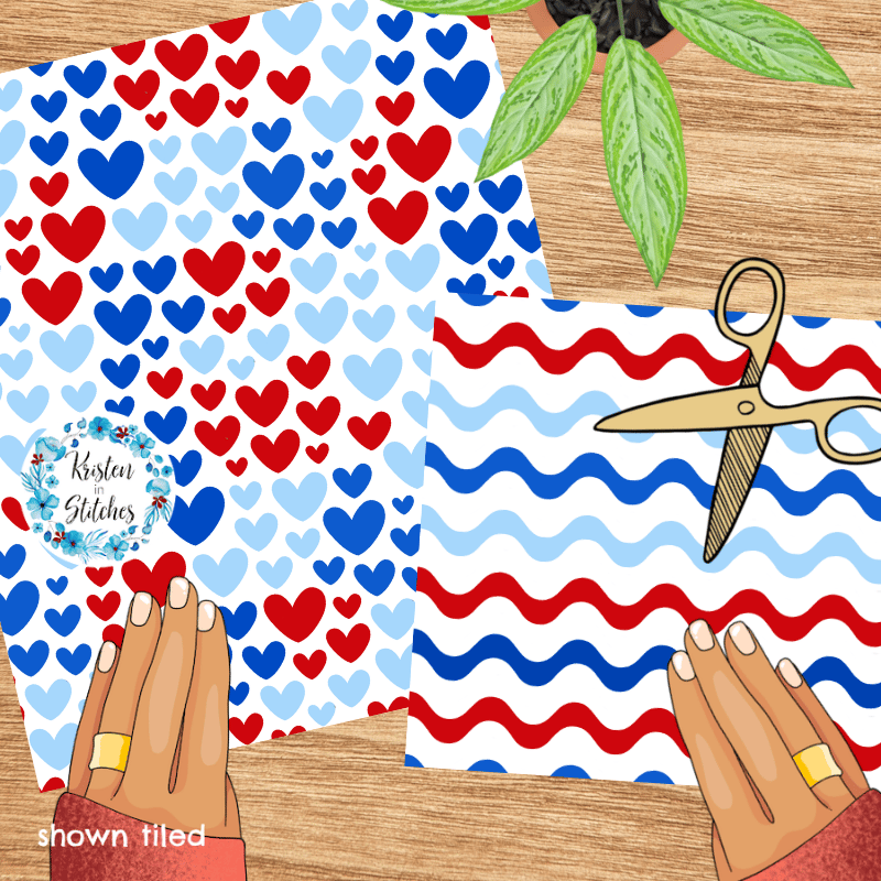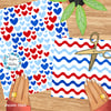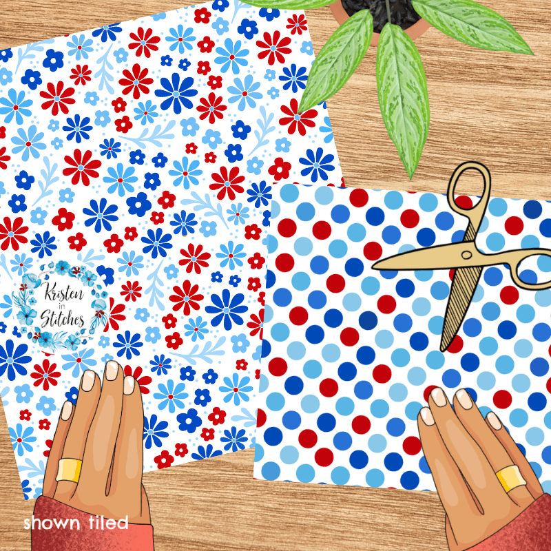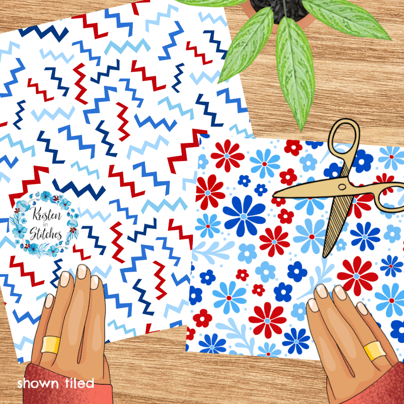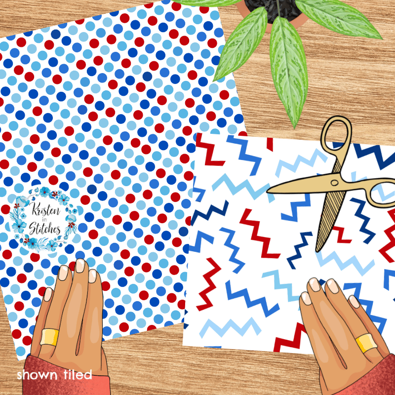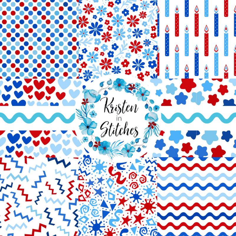 A mix and match set of patriotic patterns.
