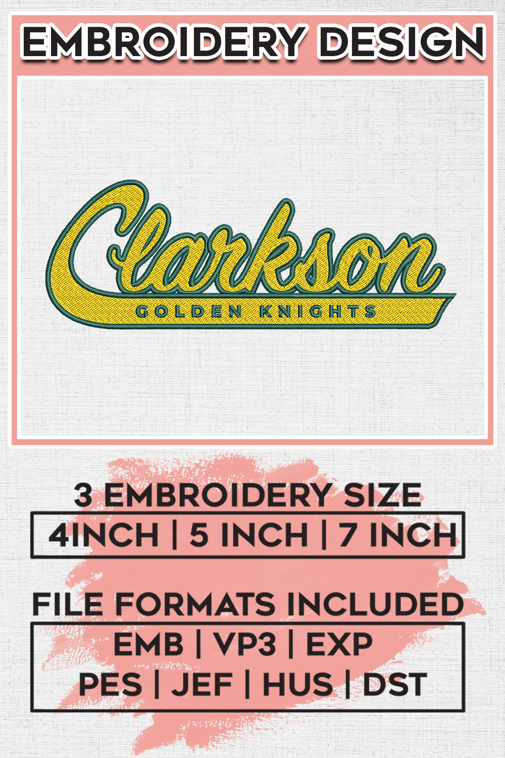 NCAA Clarkson Golden Knights Team Word Logo Embroidery Designs, NCAA Clarkson Golden Knights Machine Embroidery Files, NCAA Logo embroidery designs, Ncaa Clarkson Golden Logo, Digital Download
