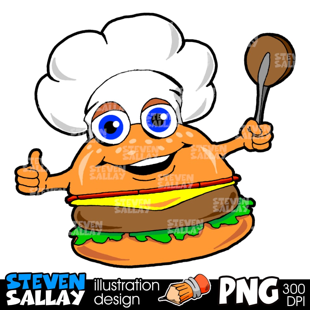 Cartoon Hamburger Clipart – Grilling Cheeseburger PNG – Digital Download.