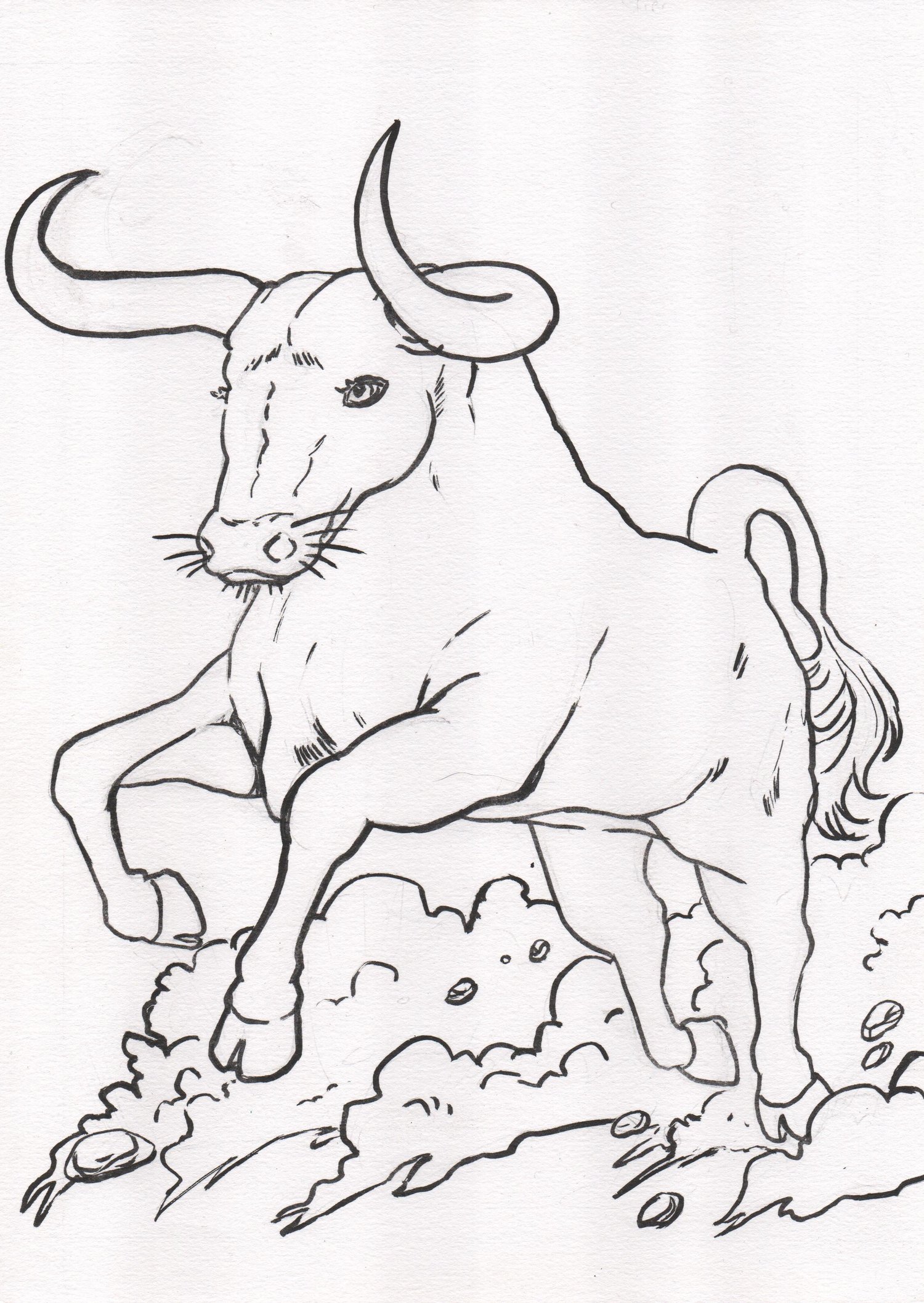Very simple drawing of a running tauros. Enough room to add a scene he is running from if you do desire so.
