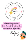 Note : Don't have time to edit your invitation video? Too busy with party preparations? Having technical issues downloading our template? No problem! Share your concerns with us and we'll help you customize your invitation video completely FREE of charge. Just send us a message—we're here to make your special celebration stress-free!"