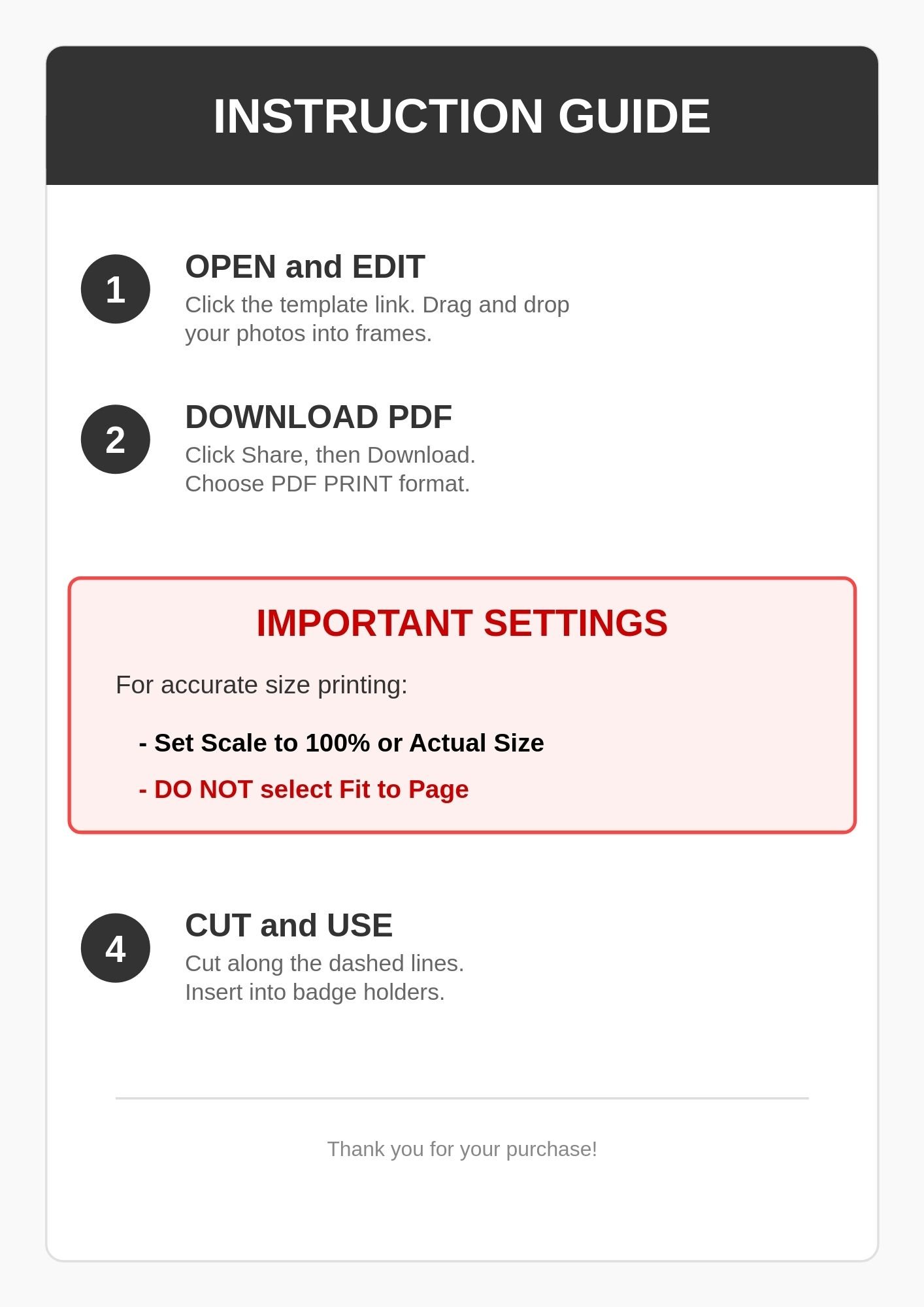 🖨️ IMPORTANT PRINTING INSTRUCTION: For the sizes to remain accurate, you must select "Actual Size" or "Scale 100%" in your printer settings. Do not select "Fit to Page."