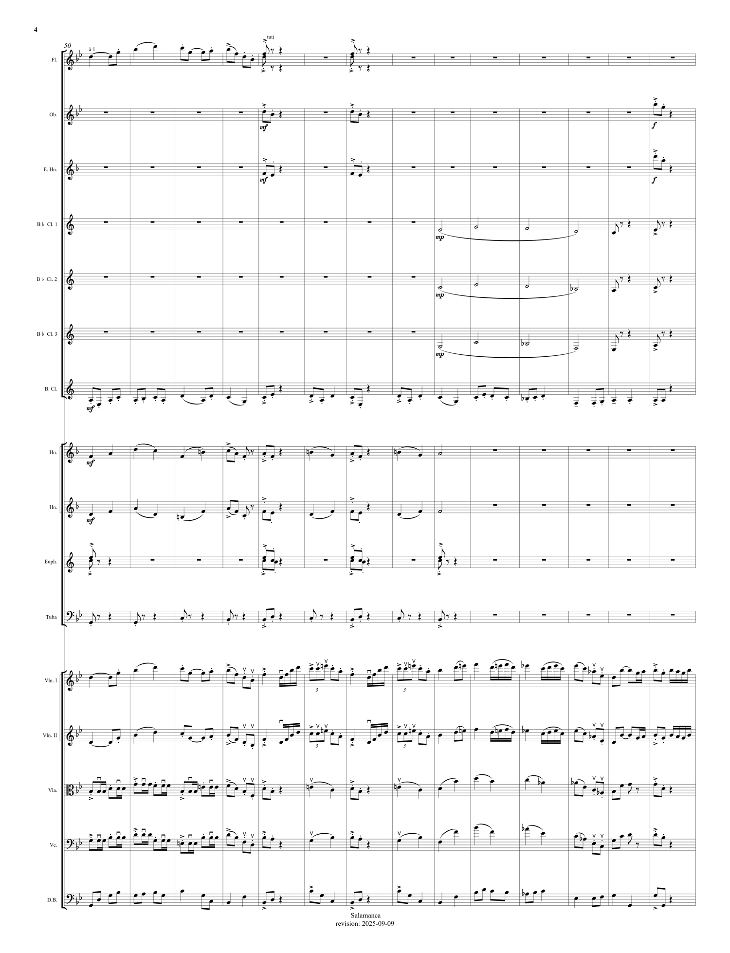 En suivant ces consignes, la pièce est en dialogue concertant entre le quintette et l’orchestre. Le quintette assume le rôle de soliste en exposant les thèmes principaux et en les développant.