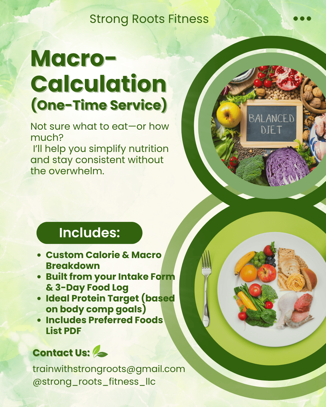 This one-time service gives you a personalized calorie and macronutrient breakdown, based on your goals, current habits, and real-life needs. Whether you're trying to lose fat, build muscle, or just feel better, this gives you a clear starting point—without committing to full-time coaching.